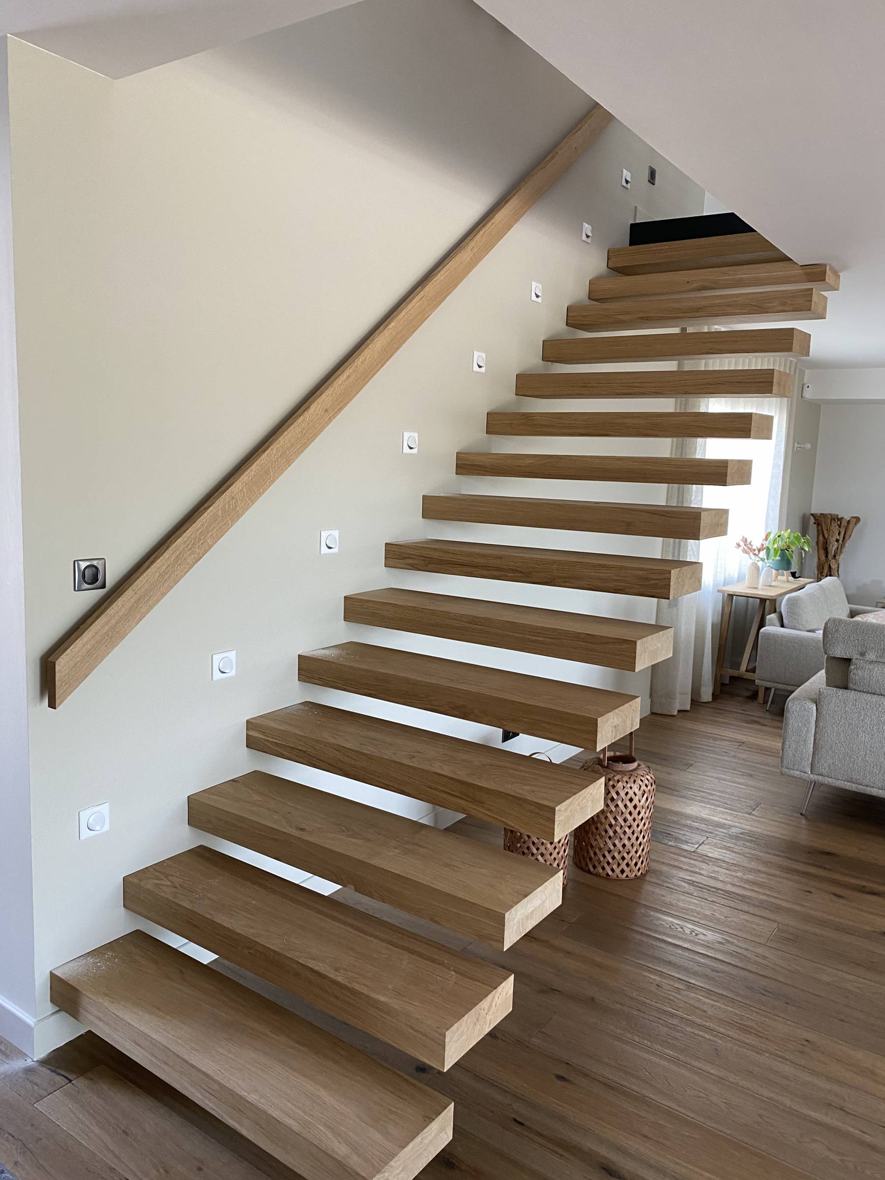 - La composition de chacun de ses éléments : des marches en bois pour sa chaleur ou en verre pour laisser passer la lumière.